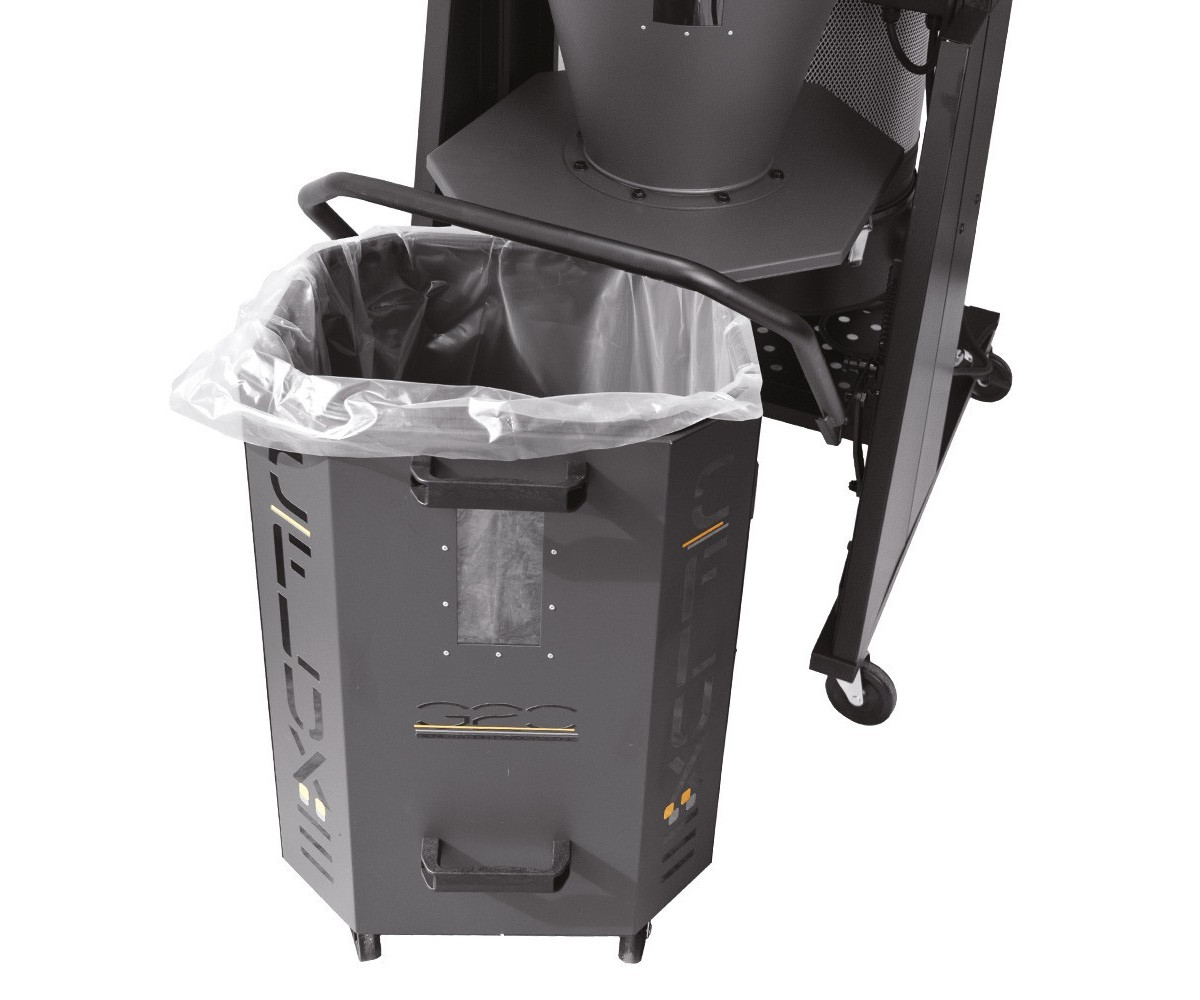 Vaciar el tambor de residuos nunca ha sido tan fácil. El mecanismo de elevación inteligente levanta el contenedor con un tirón de la palanca. Levantando la manija se coloca el contenedor. Al empujar la palanca, se levanta efectivamente el tambor y se sella contra la tapa del tambor. Esto eleva el contenedor al extractor y toda la máquina es fácil de mover por el taller de carpintería o se usa con un tragador de piso. El contenedor con tambor de residuos está equipado con ruedas giratorias para facilitar el movimiento. Las ruedas móviles del colector ahora también están frenadas, para mantener el colector firmemente en su lugar. En el contenedor de residuos ahora también encontrará una luz LED y una mirilla para ver fácilmente el nivel de llenado de aserrín.