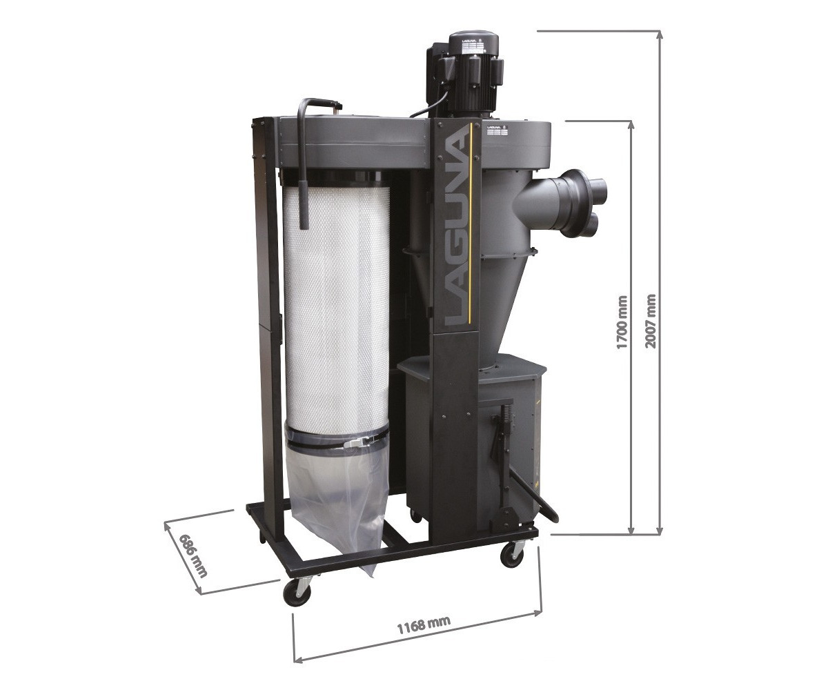 Potente colector de polvo ciclónico para grandes carpinterías profesionales que proporciona una extracción eficiente.