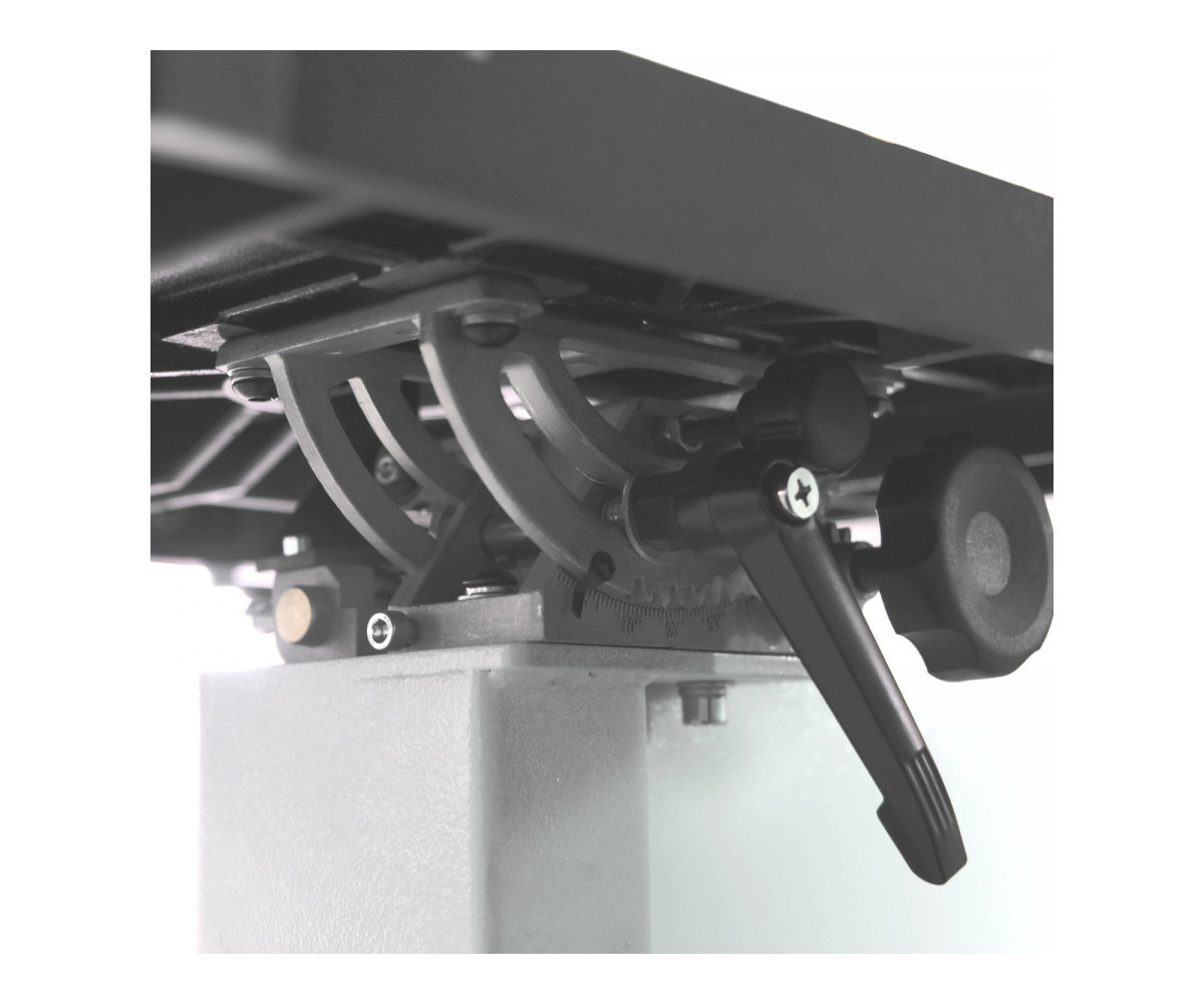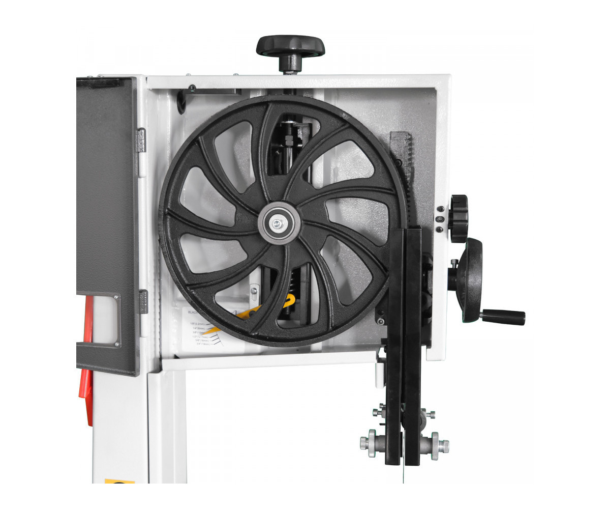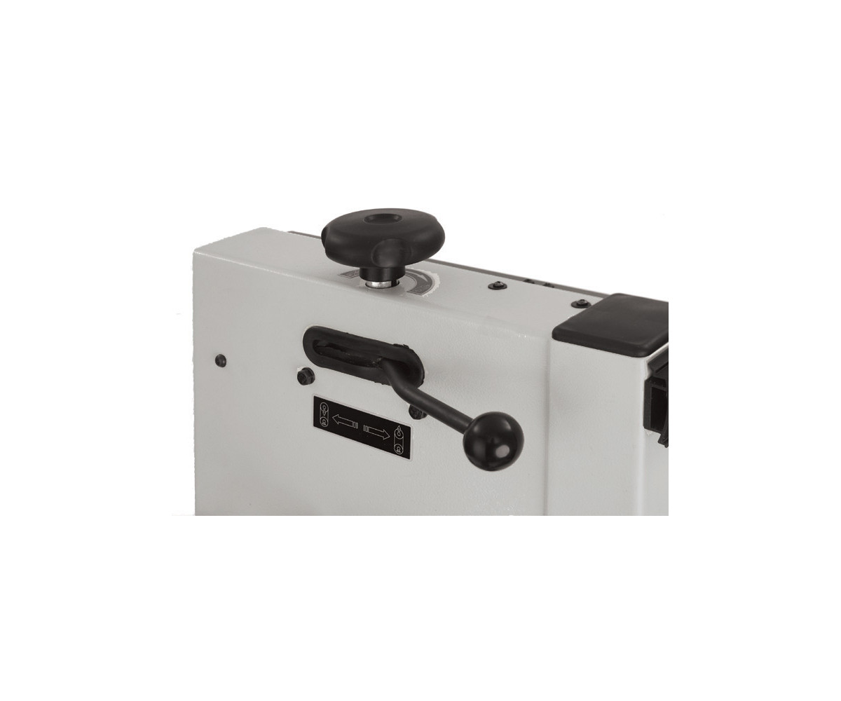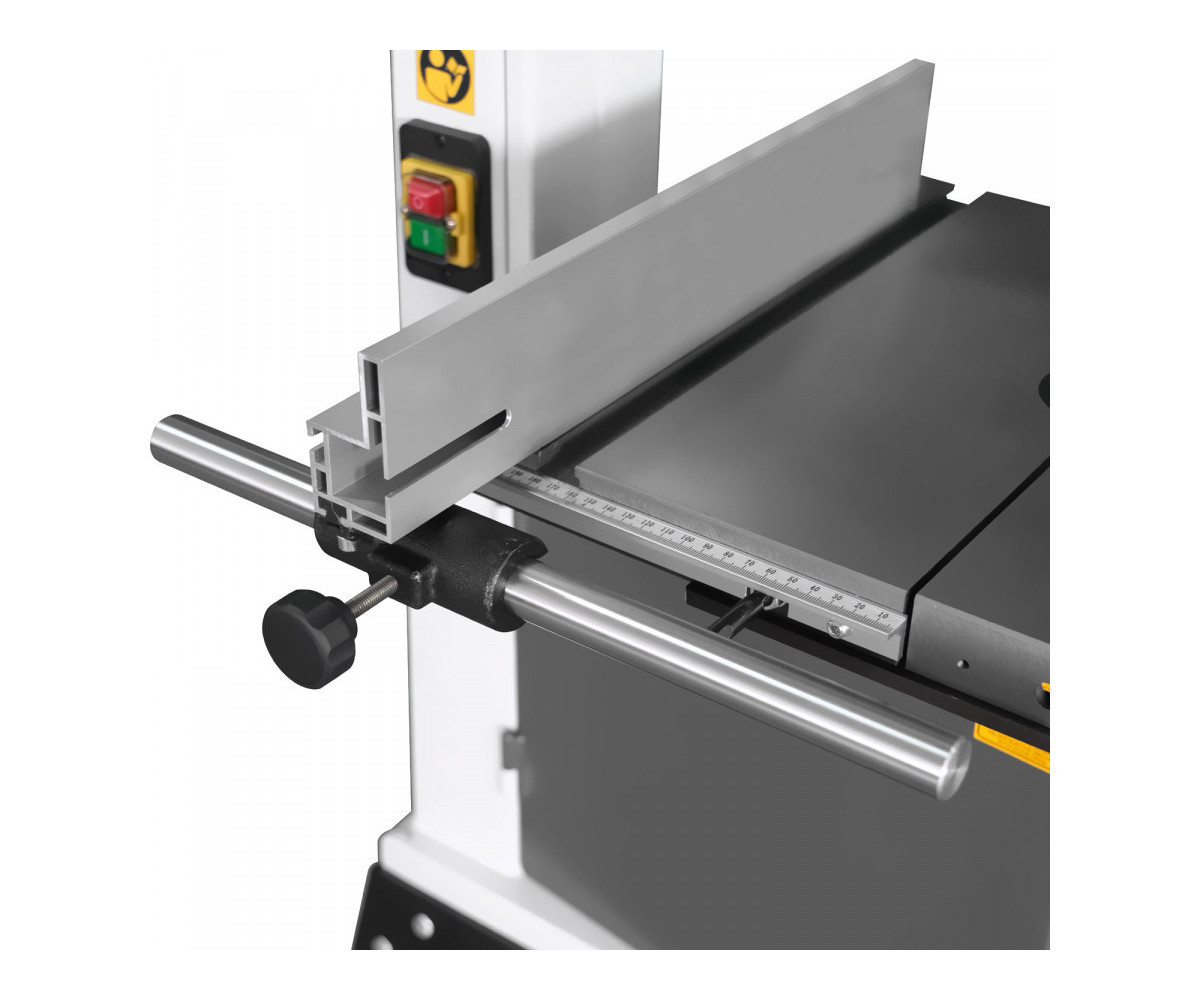 Sierra de cinta con volantes de 250 mm, guía paralela, volantes radio en fundición. Maneta de cambio rápido de cinta. Motor 0,5 cv.